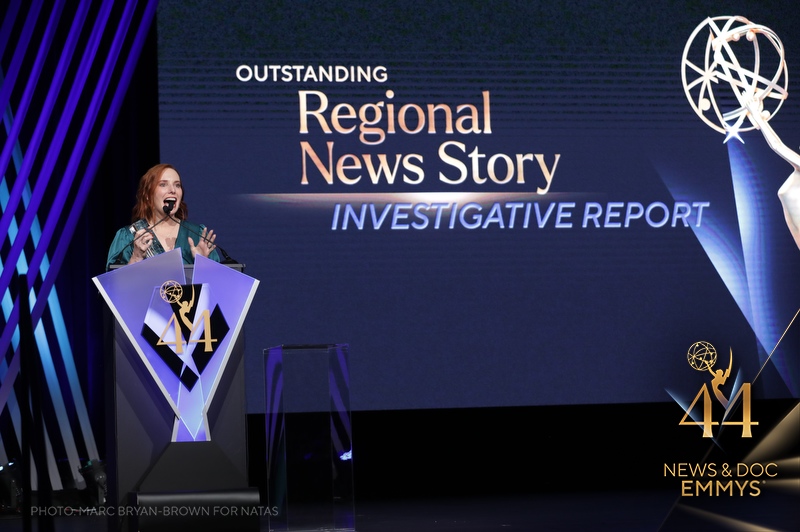 Katie Moore had the honor of accepting a national award from the National Academy of Television Arts & Sciences in September 2023 in the category of Best Local Investigative Reporting for her series of stories titled, “The Man Behind the Warehouse.” As Hurricane Ida slowly tore a path up across Southeast Louisiana, 873 nursing home residents suffered in a complex of warehouses that the owner claimed were equipped to serve as a safe haven for them. Katie dug deep into who made the decision to house them in the facility and first exposed the payment scheme that would ultimately result in a federal charges against the nursing homes’ owner for the misuse of Medicare funds.
